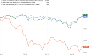 Early this year, the narrative suddenly changed. With recent releases of Anthropic’s Claude Cowork tool and OpenAI’s enterprise agent, Frontier, investors suddenly began to perceive AI not just as a tool for humans writing software, but as a potential replacement for software itself. That is, “Software may have eaten the world, but AI is about to eat software.” In mere weeks, the perceived risks of Software as a Service (SaaS) companies’ business models have jumped as their share prices have cratered.