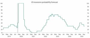 - The consensus probability of a recession over the next 12 months continues to decline and currently stands at 30%.
